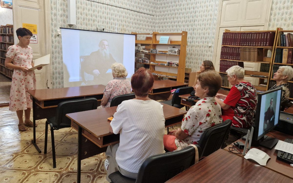 В преддверии дня рождения великого, русского писателя сотрудники симферопольской библиотеки-филиала №9 им. Л. Н. Толстого провели для пользователей библиотеки литературную гостиную «Лев Толстой и его время». В ходе мероприятия с помощью презентации библиотекарь познакомила присутствующих с биографией писателя, основными этапами его творческой деятельности, рассказала об интересных моментах его жизни. В завершении мероприятия состоялся просмотр видеоролика «Живой Толстой».