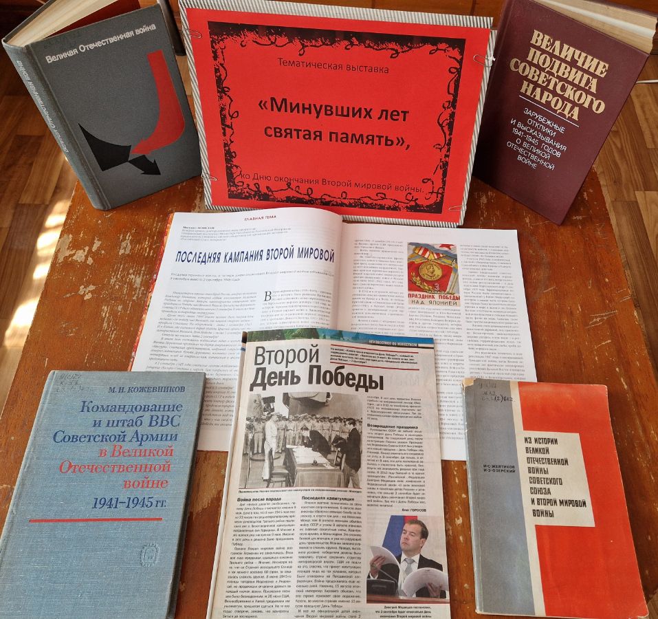 Для участников мероприятия был проведен литературный обзор у книжной выставки «Минувших лет святая память». Дополнением к мероприятию послужил просмотр фильма «3 сентября. День окончания Второй мировой войны».